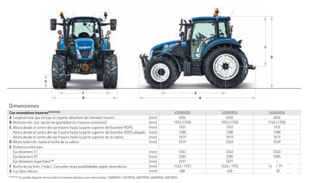| Dimensión de neumáticos traseros | 540/65 R34 |